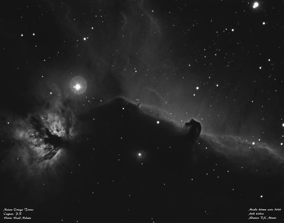 Imagen monocromática de la Nebulosa de Cabeza de Caballo. Foto por Nelson Ortega Torres de la SAC.