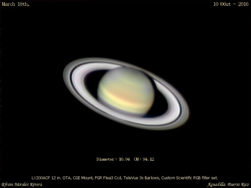 Exquisita imagen del planeta Saturno, por Efraín Morales, de la inconfundible Sociedad de Astronomía del Caribe (SAC).