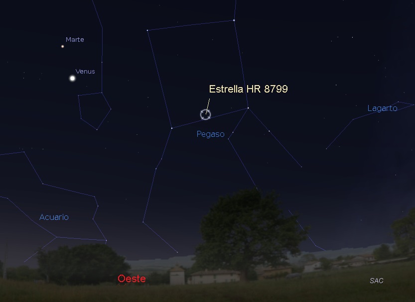 "Aunque visualmente no podemos ver los planetas alrededor de ésta, de todos modos resulta fascinante darle un vistazo a través de binoculares (o un peq. telescopio) desde nuestro patio y saber que allí se pudo captar a cuatro planetas que están orbitando a esa estrella ahora mismo", indicó la SAC a la vez que compartió ilustraciones para localizarla.