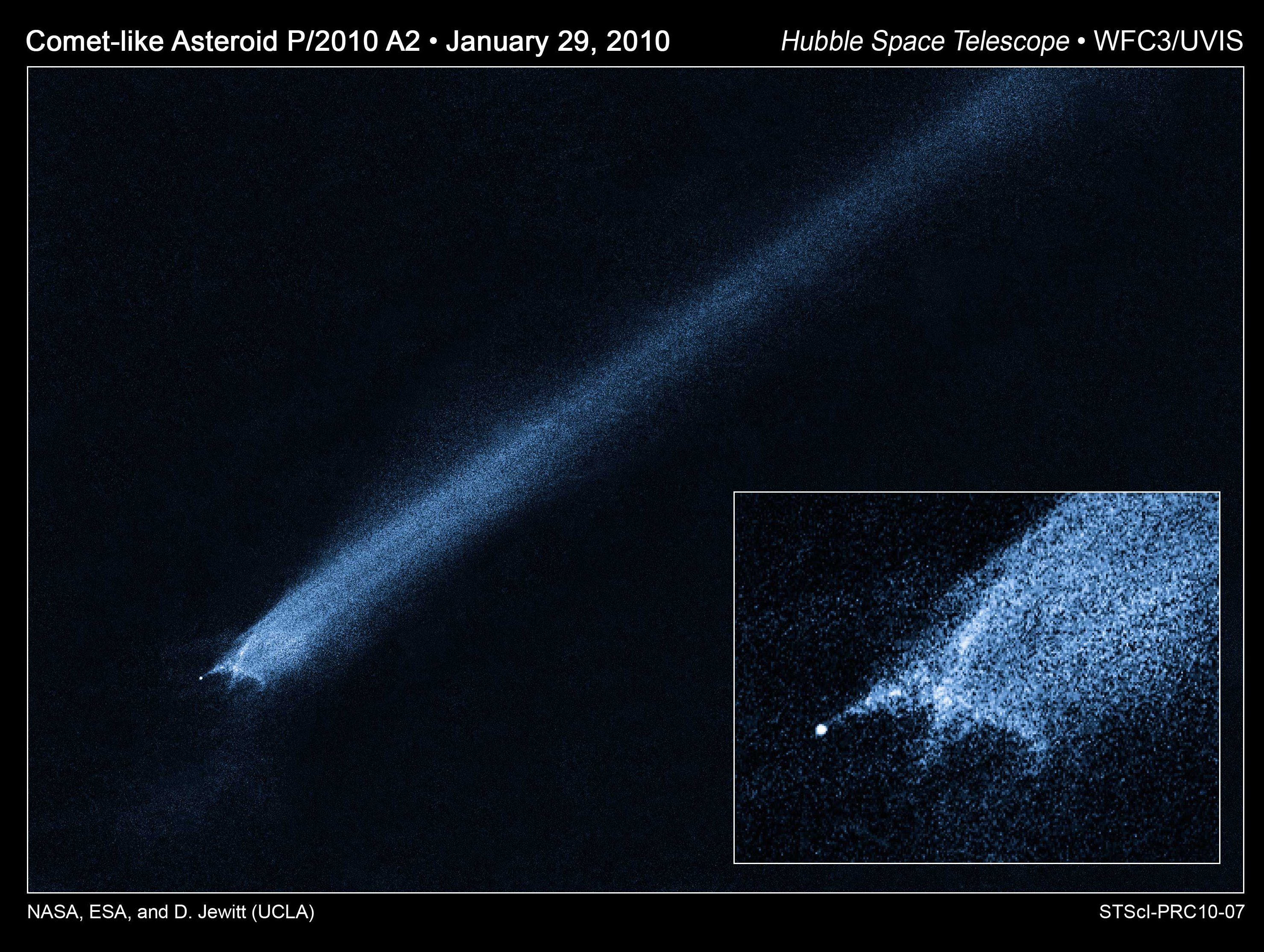 una enorme colisión entre 2 asteroides. Se estima que el impacto ocurrió a mas de 11,000 MPH (5 veces más rápido que una bala de un rifle); el resultado de la colisión dejó una nube