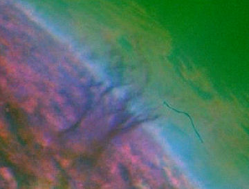 Don Campbell, utilizando el RadioTelescopio de Arecibo logró un interesante descubrimiento : enviando señales que rebotaron en la superficie de Titan notó que en algunas areas del suelo el comportamiento de los rebotes de señales indicaban que hay líquidos en ciertas areas de la superficie. Luego en una reciente misión aterrizó en Titan la nave Huygens construida principalmente por los italianos. Esta nave, de la Agencia Espacial Europea y la Agencia Espacial Italiana tomó reveladoras fotos mientras descendía hacia la superficie de Titan. Entre estas fotografió nubes cargadas de metano líquido , ríos (sí, ríos!) y areas que se presumen son lagos de metano líquido. En Febrero del 2007 la nave Cassini , la cual actualmente está orbitando a Saturno, detectó y fotografió una enorme nube sobre Titan, y utilizando radar y otros instrumentos logró una imagen en la cual se ven claramente los lagos de metano líquido.
