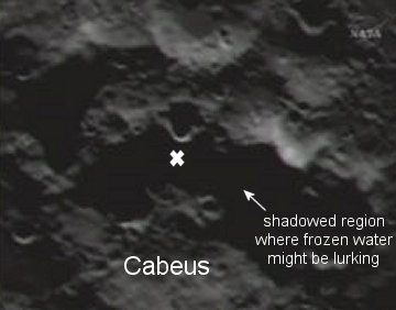 El 9 de octubre del 2009 la nave LCROSS (de NASA) impactó la Luna intencionalmente para intentar exponer posible agua congelada en el crater CABEUS. VER Crater