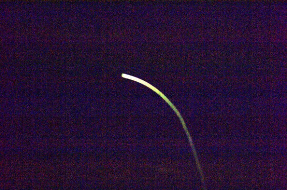 lucía como un meteoro. Aunque la fricción pone la parte inferior del Transbordador "al rojo vivo", la nave es muy bien protegida por las lozas térmicas. VER VIDEOcaptado desde Honduras
