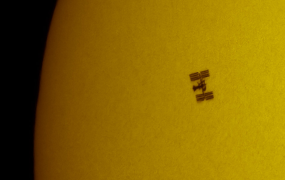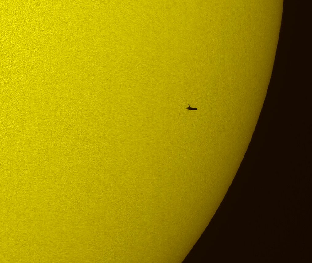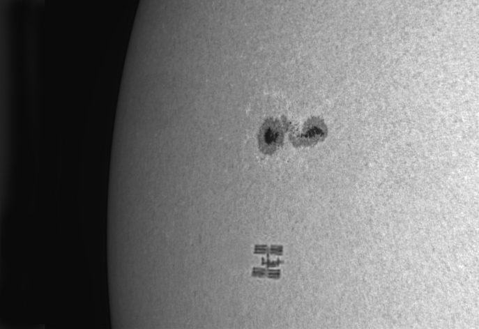 Anteriormente habia captado el Transbordador Espacial Atlantis justo antes de que el Telescopio Hubble fuese capturado con el brazo robótico, mientras pasaban frente al Sol !( Presiona Aquí )